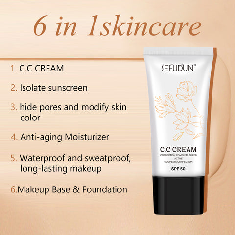 【 6 in 1 Product】Foundation& Sunscreen& Anti-Aging& Moisturizer. Brighten complexion ,conceals pigmentation, Invisible Pore.
