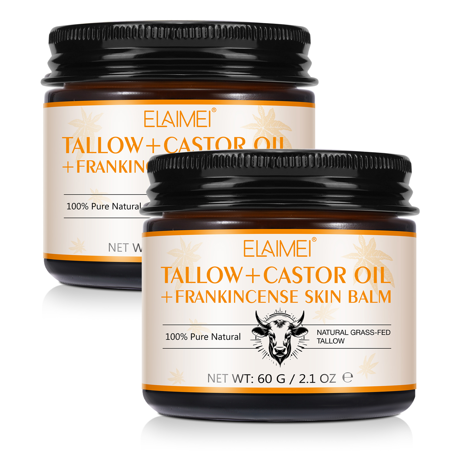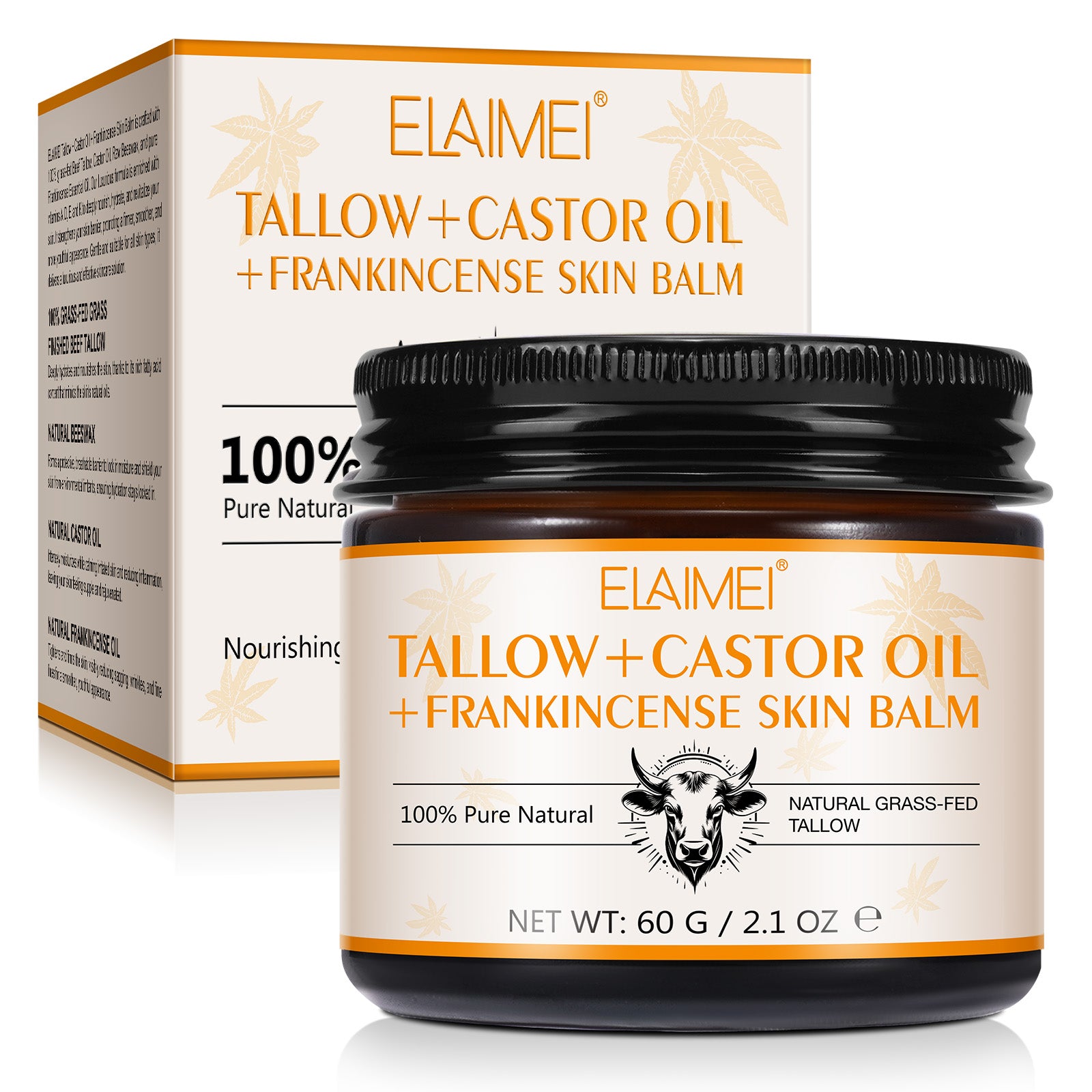 Nourish and protect your skin with ELAIMEI’s luxurious Skin Balm, crafted with tallow, castor oil, and frankincense. This rich, natural blend deeply hydrates, soothes dryness, and supports skin repair while promoting a smooth, radiant complexion. Tallow delivers intense moisture, castor oil helps lock it in, and frankincense provides calming and rejuvenating benefits. Gentle enough for sensitive skin and suitable for all types, this multipurpose balm can be used on the face, body, or rough areas in need of extra care.